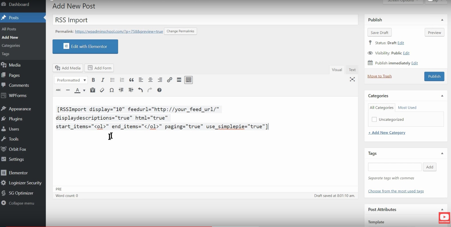 Install it, go to its section in the wp-admin, and it will guide you along through the settings. To add a feed, just click on “Add New,” set your preferences, and publish it. You can set it to remain active, so it can update automatically whenever there’s new content. After adding the RSS feed, you can click on “View Items” to see the articles currently in that feed.